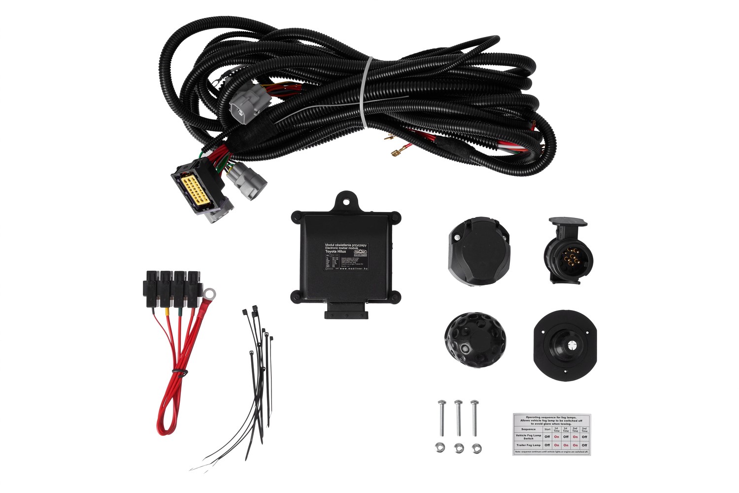 Dedicated Plug and Play towbar wiring kit for Toyota Hilux. Designed and manufactured specifically for this car model.
